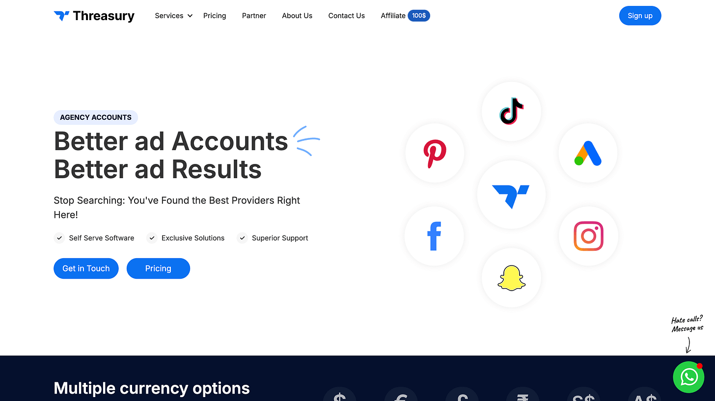 Why Ranked #2: OrangeTrail secured second place with the most comprehensive platform coverage (8 platforms), a 27+ expert team dedicated to compliance, official Meta Business Partner status, and the strongest compliance infrastructure in the industry. If staying policy-compliant is your top priority, OrangeTrail delivers peace of mind.